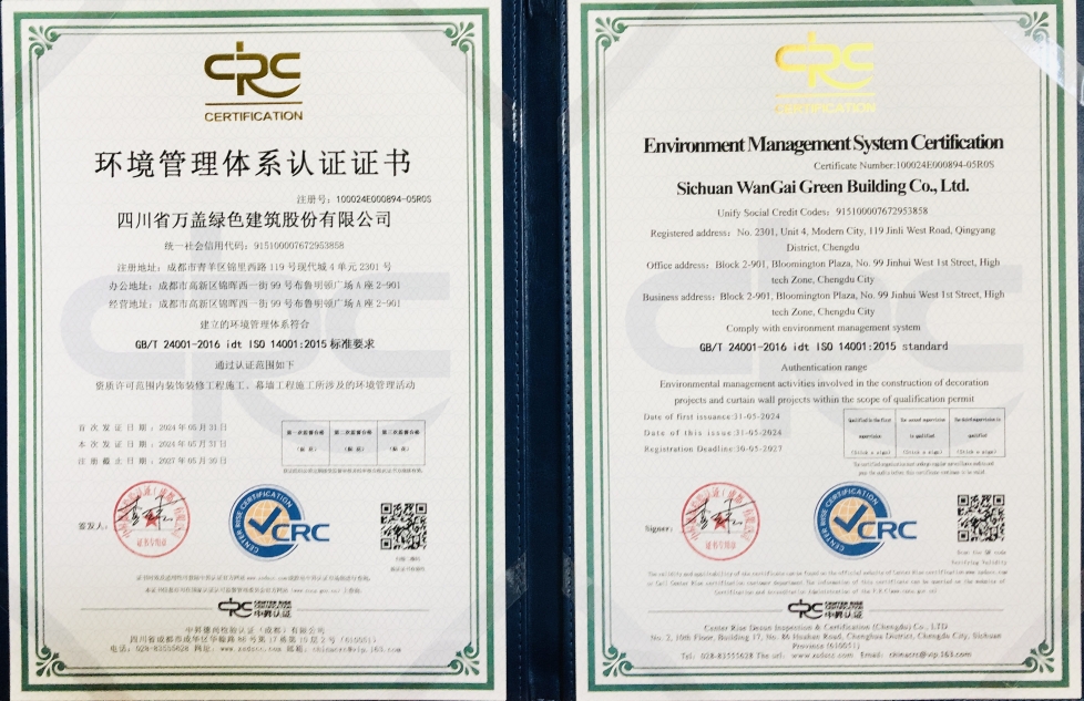 萬蓋獲評ISO14001環(huán)境管理體系認(rèn)證證書