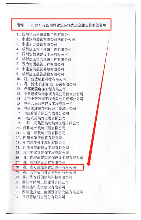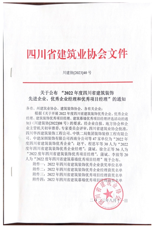 2022年度四川省建筑裝飾先進(jìn)企業(yè)