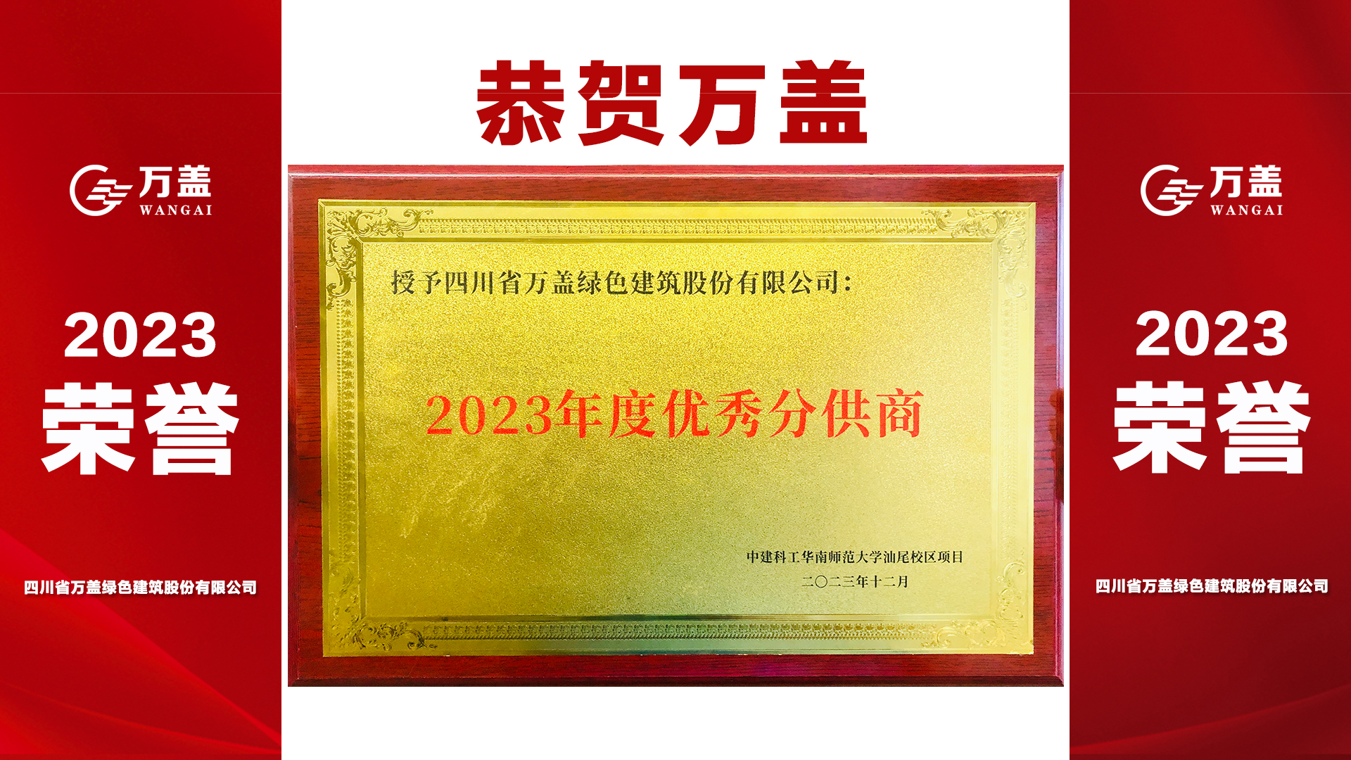 2023年12月中建科工華南師范大學汕尾校區(qū)項目授予四川省萬蓋綠色建筑股份有限公司2023年度優(yōu)秀分供商榮譽。